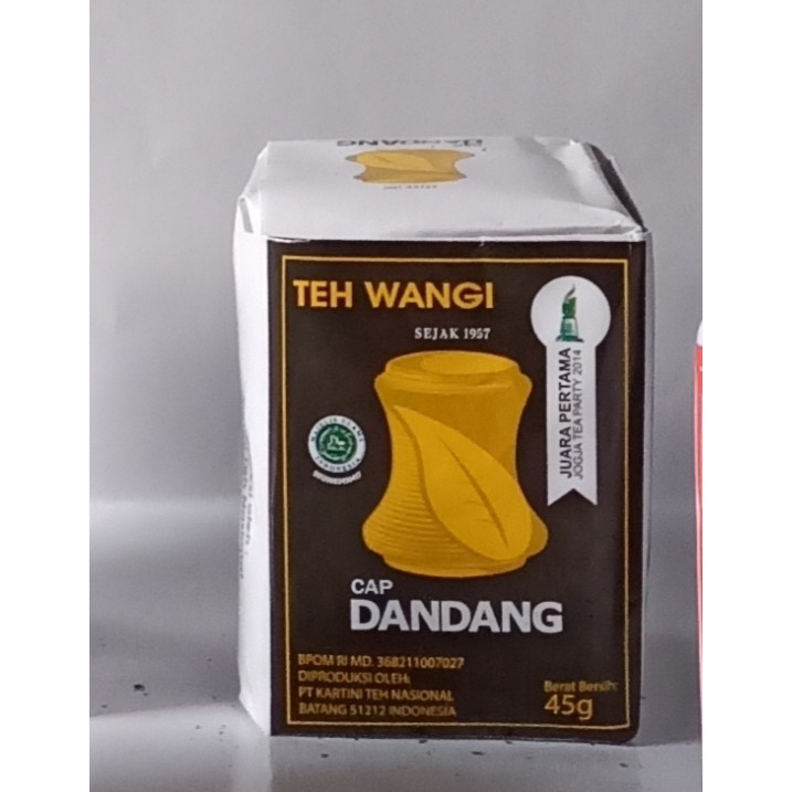 Teh Wangi Dandang Hitam 45gr. Produsen teh asal Surabaya ini juga menyediakan paket hampers Natal dan Tahun baru dengan harga mulai Rp245000- per paket. Beberapa studi mengejar bahwa kandungan antioksidan pada teh dandang dapat menolong mengurangi dan mengawal kadar kolesterol dalam tubuh.